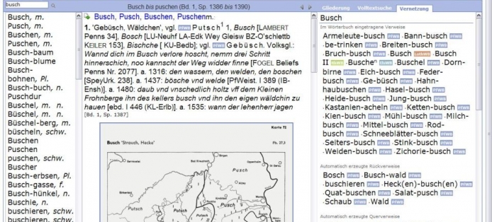 Im Rahmen des Projekts wurden die vier Dialektwörterbücher digitalisiert und in vernetzter Form im Internet publiziert. Optimale Ausgangsbasis des Verbunds war das „Pfälzische Wörterbuch“, das jüngste der vier Wörterbücher, das in Teilen zu Beginn des Vorhabens bereits maschinenlesbar vorlag und vor allem überall dort obligatorische Verweise auf die angrenzenden Wörterbücher setzt, wo diese ein korrespondierendes Stichwort anführen. Der Verbund der Dialektwörterbücher wurde dann zusätzlich mit dem „Mittelhochdeutschen Handwörterbuch“ von Matthias Lexer verknüpft. Ebenfalls als Hyperlinks realisiert wurden Verweise auf die Erstausgabe des „Deutschen Wörterbuchs“ der Brüder Grimm, so dass auch der standardsprachliche Zugang zum Dialektwortschatz möglich ist. Durch eine auf der Grundlage des vorhandenen Wörterbuchmaterials durchgeführte Sprachkartierung ergeben sich darüber hinaus Berührungspunkte zur Mundartgeographie. Durch elektronische Kartierungen, die sich auf die in den Wörterbüchern verzeichneten Ortspunkte stützen, kann die Arealität des Wortschatzes deutlicher als zuvor dokumentiert werden. Mit dem Dialektwörterbuchverbund ist auf diese Weise ein innovatives Werkzeug zur Erforschung der deutschen Dialektlandschaft entstanden, das um weitere Nachschlagewerke ergänzt werden kann.